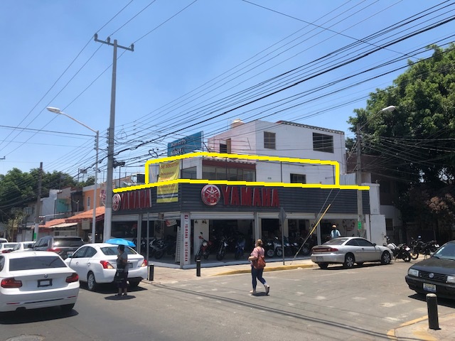 Local comercial en renta en planta alta en la esquina de la Av. Santa Margarita y Mimosas. - Superficie techada 55 m2 y terraza 45 m2 - Arriba de la agencia de Motocicletas Yamaha. Ideal para restaurante de alitas, oficinas, café, etc.